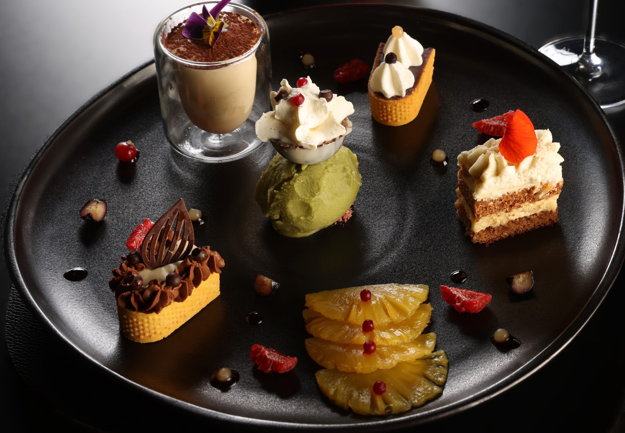 « Tous nos desserts éphémères sont élaborés maisons à l’exception des mochis, glaces et sont délicatement accompagnés d’une boule de glace Artisanale Végétale, élaborée avec soin , pour sublimer chaque création avec fraîcheur et raffinement. »