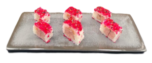 – 5 Makis Tartare de Truite Rose de la maison “Petit” avec éclats de Pistache