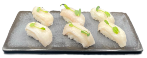 – 5 Nigiris de Sole , Marinée au Citron Lime, Pousses de Pois fraîches
